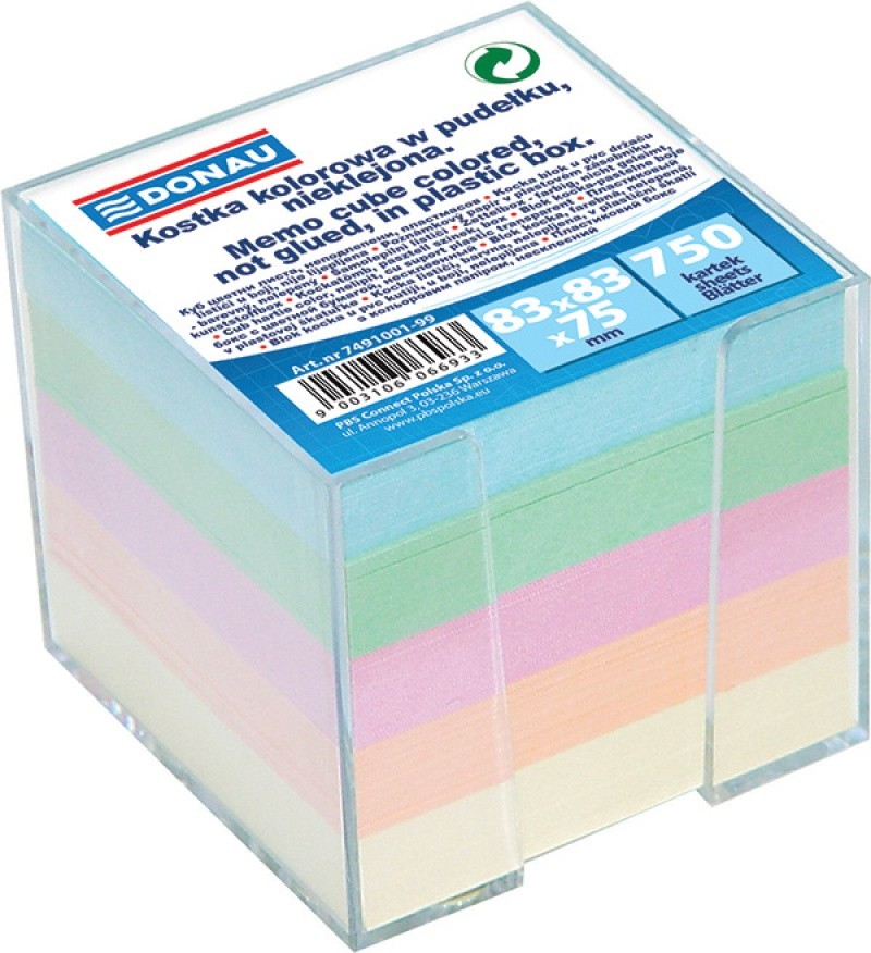 MEMO CUBE "OFFICE PRODUCTS" - COLOURED, NOT GLUED, 85X85X40MM