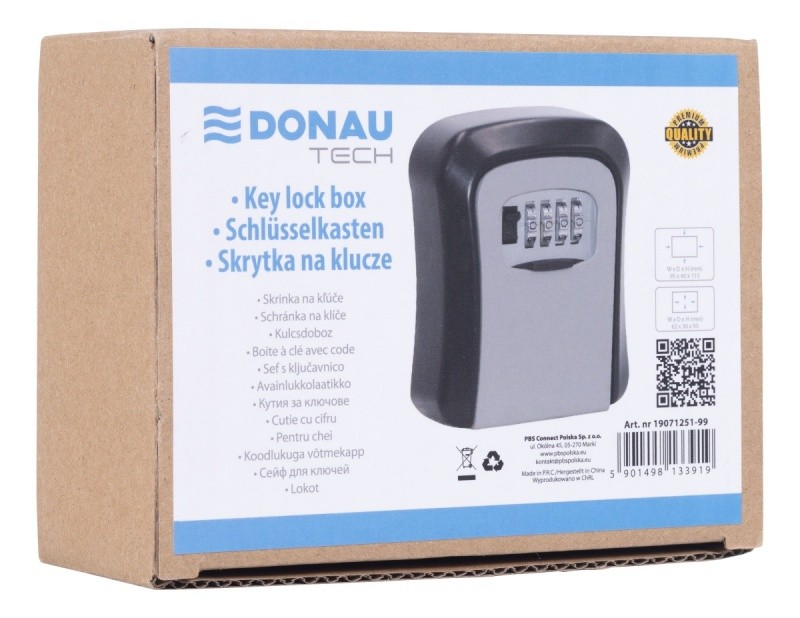 KEY BOX, DONAU TECH, 115X95X40MM, BLACK AND SILVER