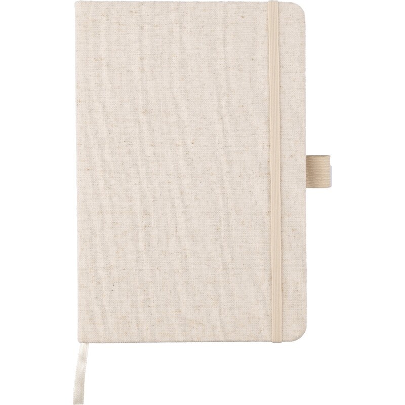 Notebook approx. size A5 with 80 lined pages, bookmark ribbon for easy marking of the last page or important notes, an extra elastic band closure in matching colour, features a pen loop, fits inside of a school backpack, includes hemp icon on product, product made from hemp