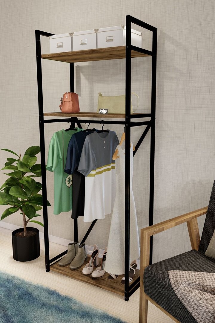 ღია გარდერობი/ფეხსაცმლის თარო მუქი ხის ფაქტურით(ასაწყობ მდგომარეობაში)