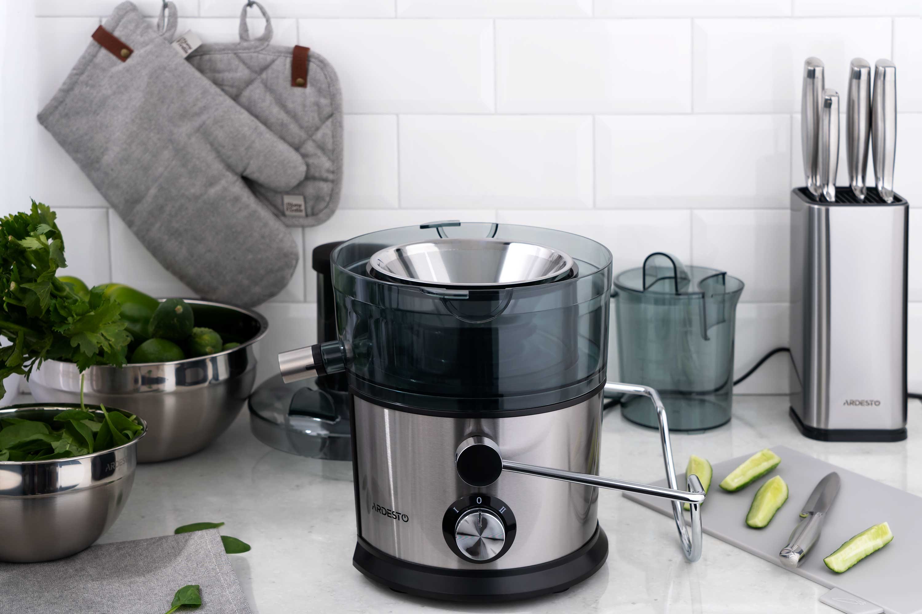ARDESTO JEG-800 ცენტრიდანული წვენსაწური ყველა ოჯახისთვის აუცილებელია, რადგან ის საშუალებას გაძლევთ დატკბეთ ბუნების საჩუქრების სიმდიდრით და მიირთვათ გემრიელი, ვიტამინებით გამდიდრებული სასმელები. კომპლექტში შედის მოსახსნელი კონტეინერი რბილობისთვის და მოცულობა (1000 მლ) წვენისთვის. მოდელი აღჭურვილია 1100 ვატიანი დაბალი ხმაურის ძრავით: ჩუმი მუშაობა - სასიამოვნო და მშვიდი ატმოსფერო სამზარეულოში.