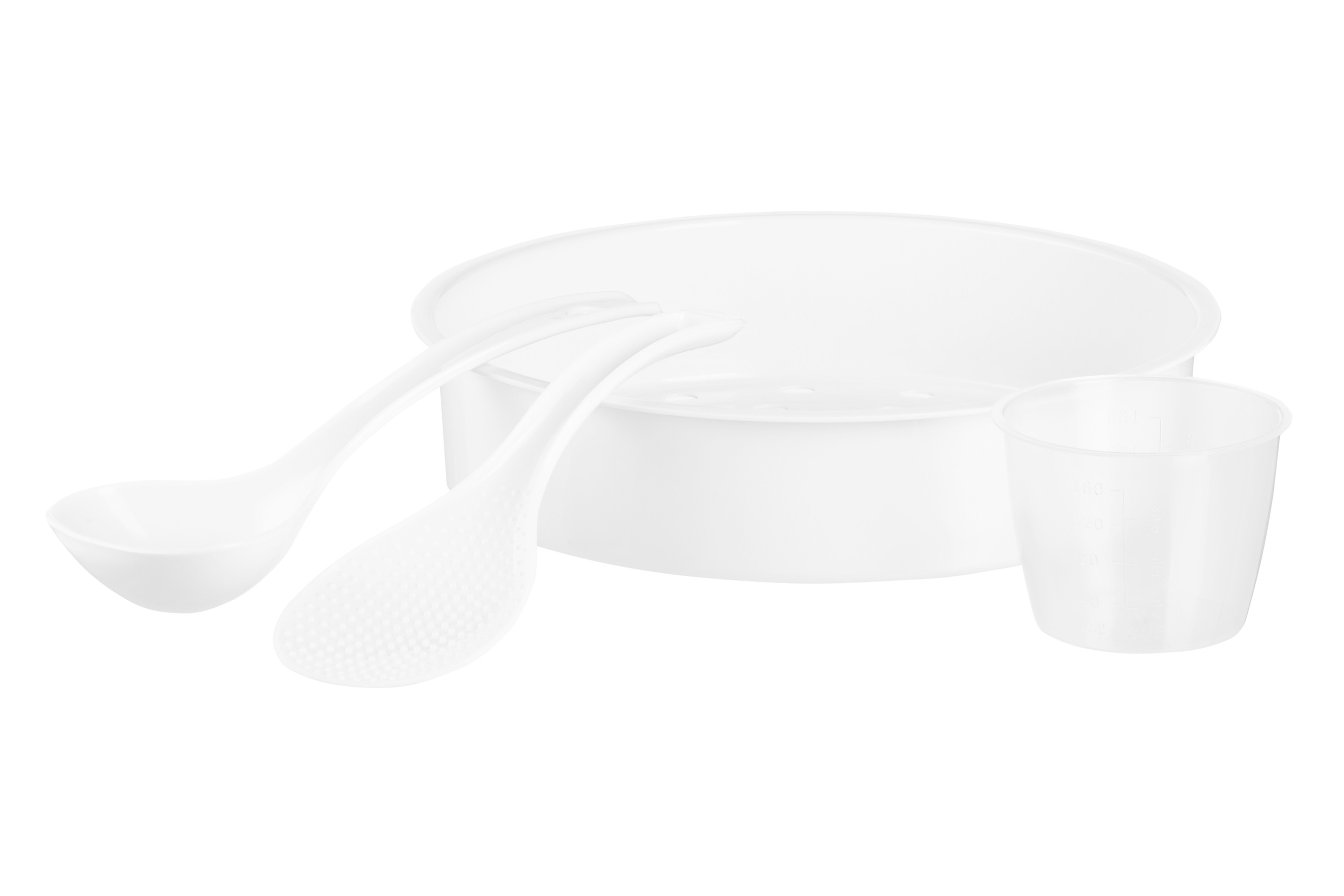 • აქსესუარები - წვნიანის კოვზი, თასი, საზომი ჭიქა, სპეციალური თარო ორთქლზე მოსამზადებლად, რეცეპტის წიგნი