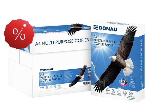 (ყუთი-5შეკვრა) A4 საბეჭდი ქაღალდი DONAU 80 გრ. 500 ფურც. სითეთრე - 150CIE, სისქე - 106მკ. C კლასი