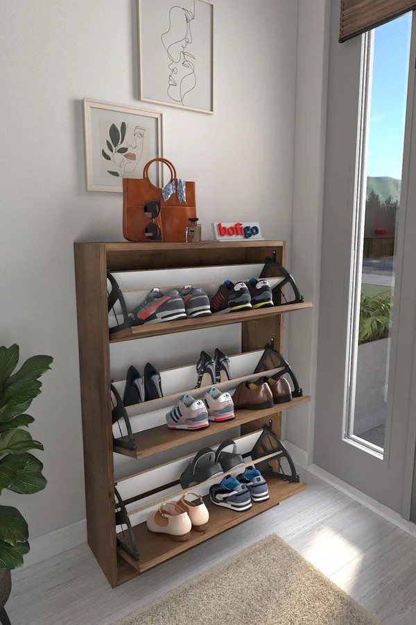 ფეხსაცმლის კარადა მუქი ხის ფაქტურით (BF-669)(ასაწყობ მდგომარეობაში)