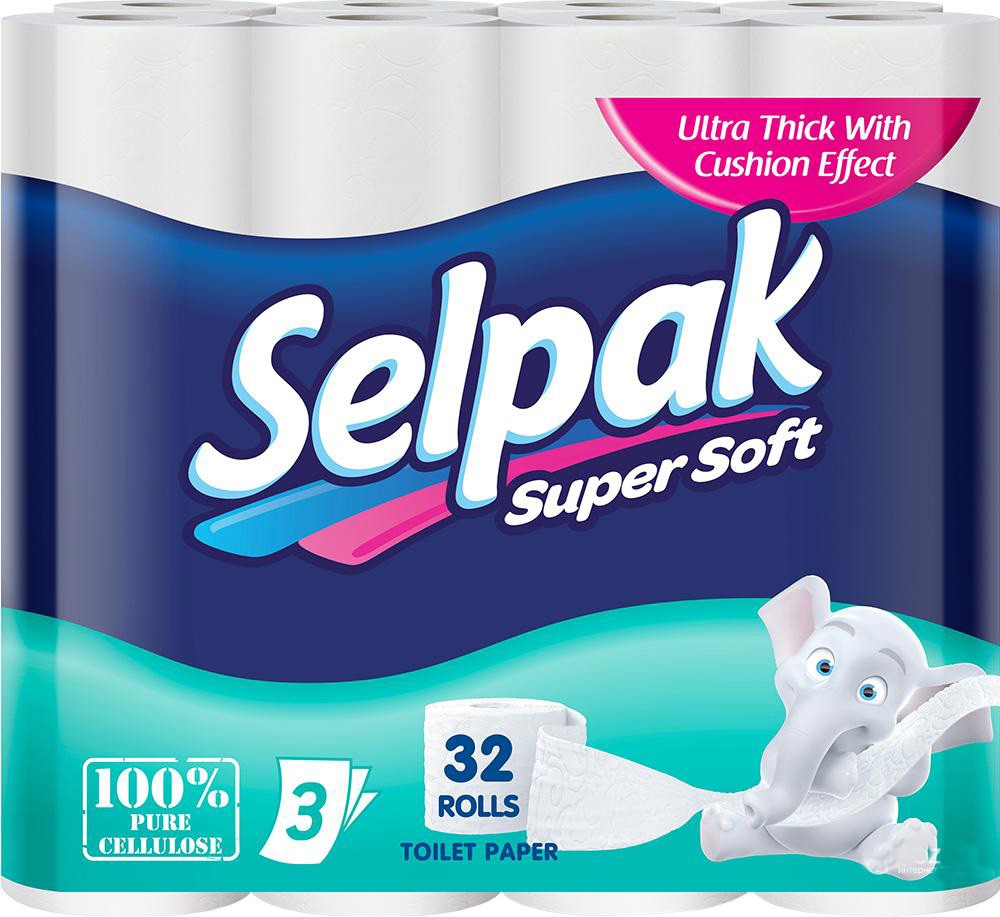 (შეკვრა - 3 ცალი) საპირფარეშო ქაღალდი "სელპაკი / SELPAK" (3ფენა)(32ც. შეფუთვა) - საბითუმო შეთავაზება