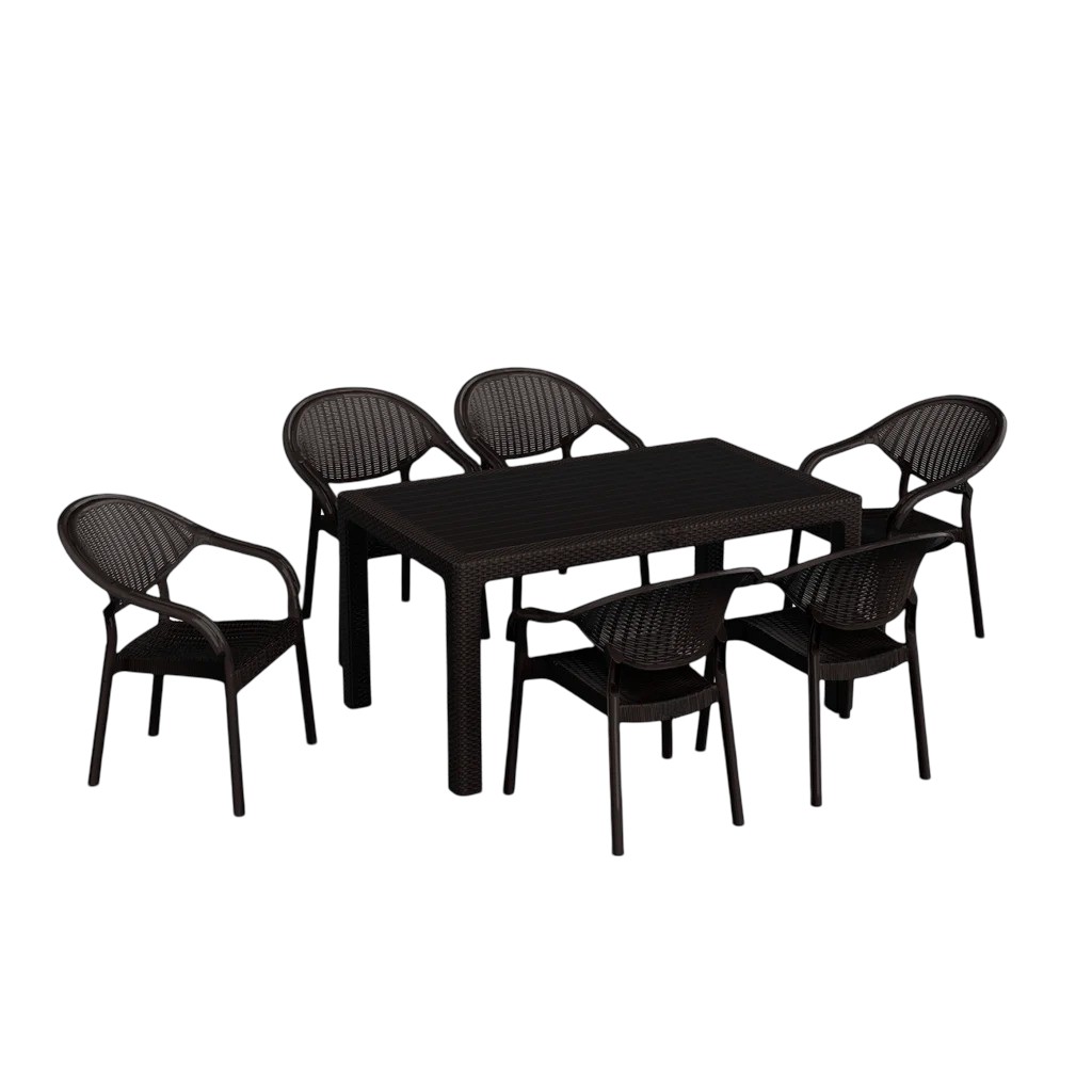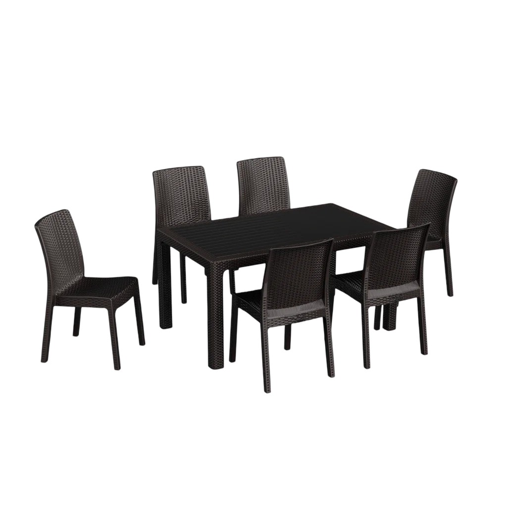 რატანის მაგიდა 6 სკამით ყავისფერი (SP923)