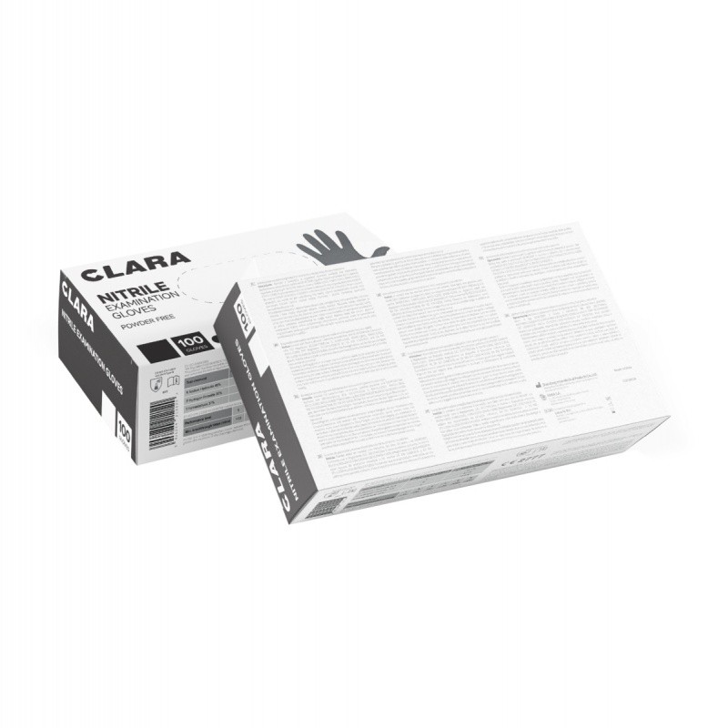 ერთჯერადი სამედიცინო ხელთათმანი ნიტრილი, CLARA (50 წყვილი, 100 ცალი) L ზომა შავი