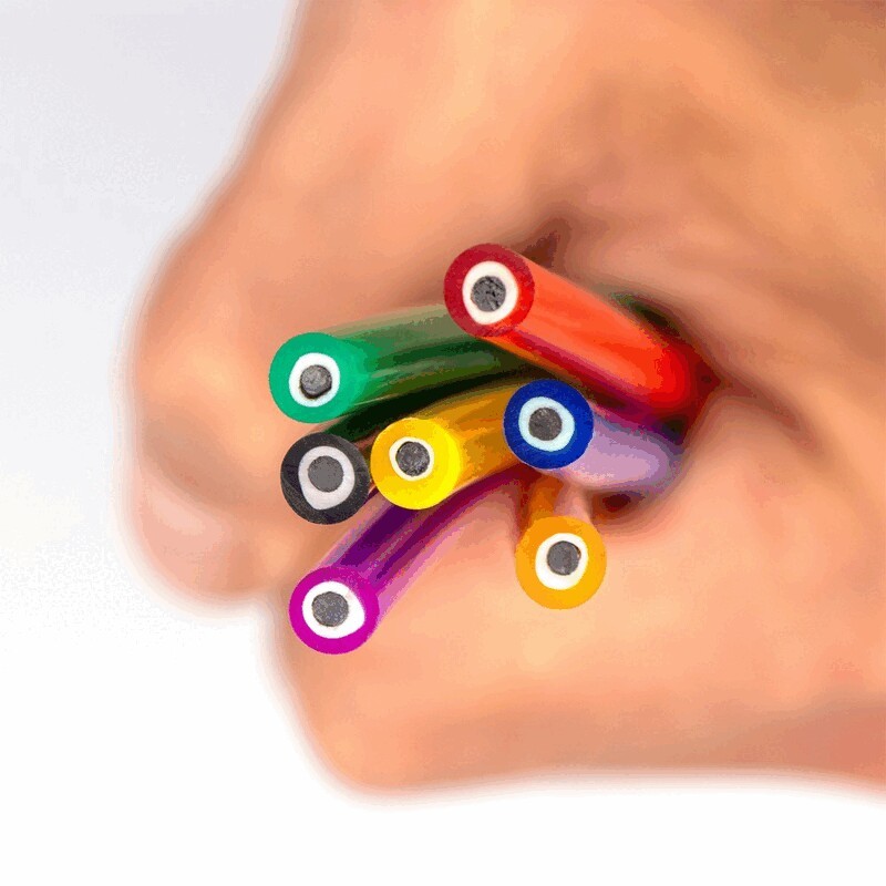 Long flexible pencil with glossy finish and matching eraser. Its bendable design is more resistant to breaking and can help relieve stress. Tip not sharpened, product made of PVC