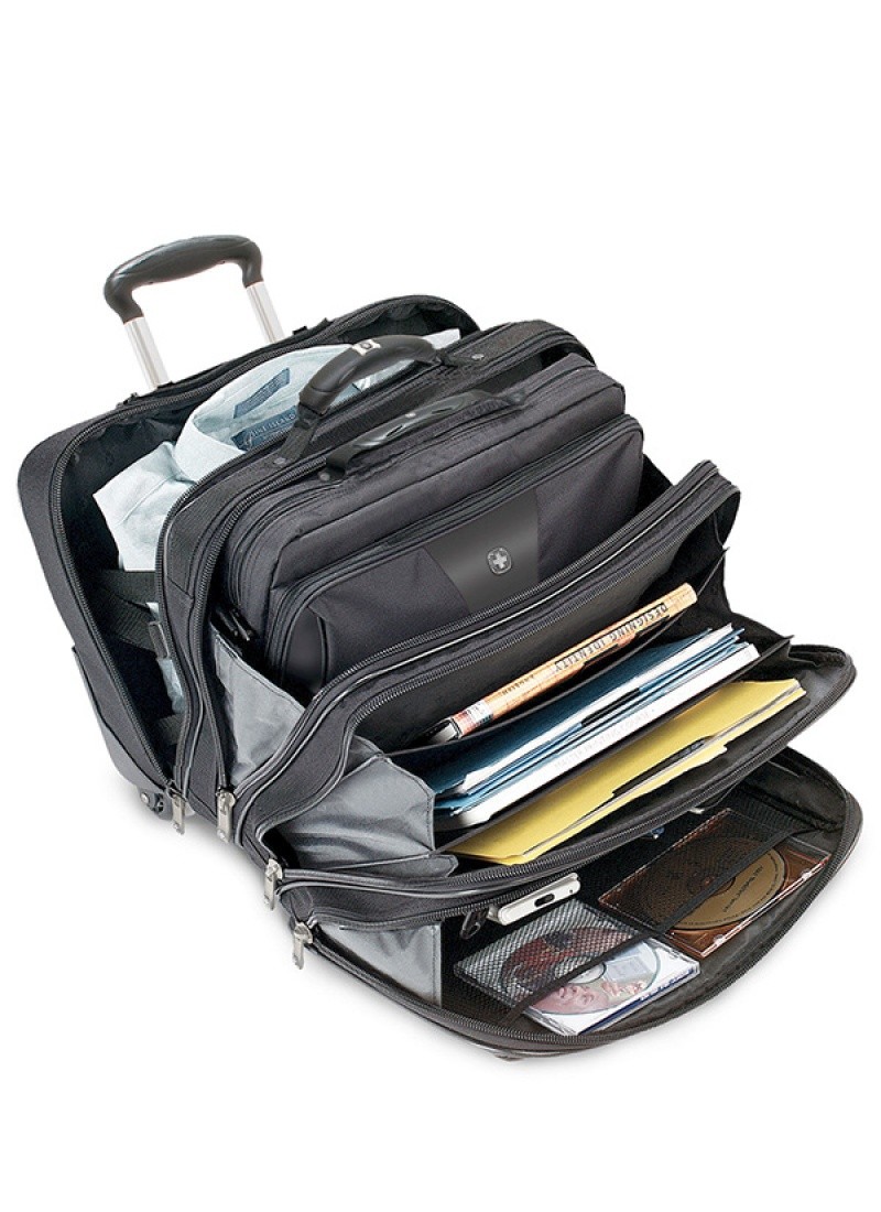 Be prepared for everything from a quick commute to the office to an overnight business trip with this two-piece business set which includes a rolling laptop briefcase containing multiple storage compartments and a matching, removable 15.4” / 39 cm laptop slimcase